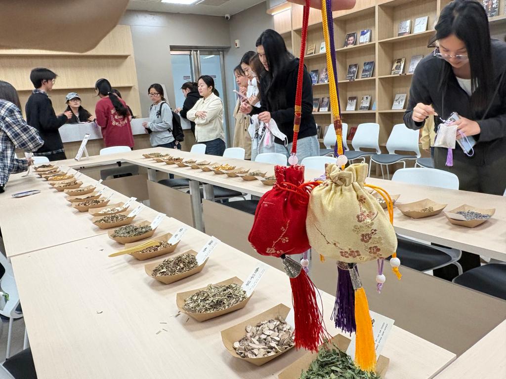 百草凝香——中医药香囊DIY以匠心为韵,传承非遗智慧。活动提供艾叶、薄荷叶、薰衣草、肉桂等道地养生药材,师生可根据药材功效亲手制作专属香囊,沉浸式体验中医“衣冠疗法”,让传统文化可触、可藏。